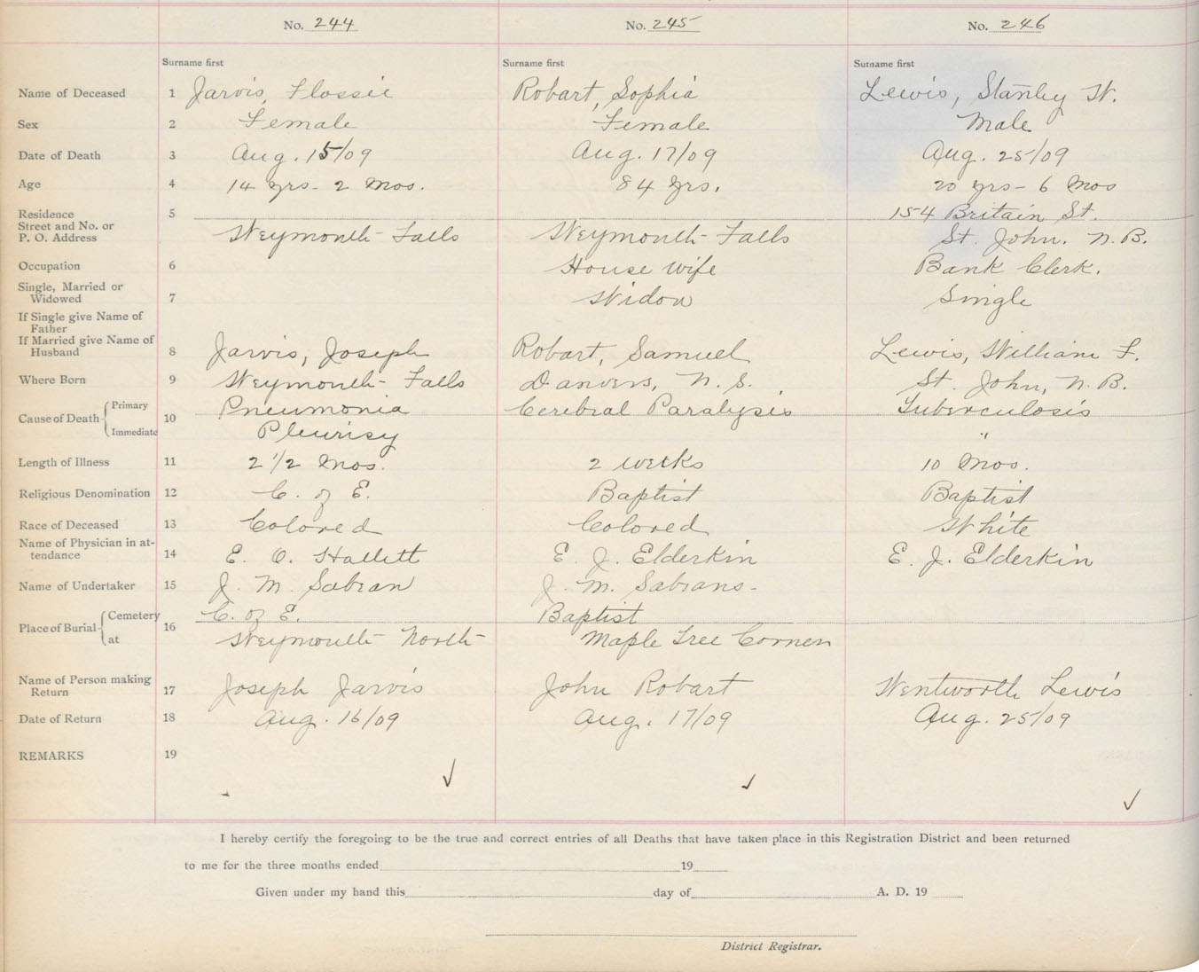 Death Registration: Year: 1909 book: 6 page: 41 number: 244