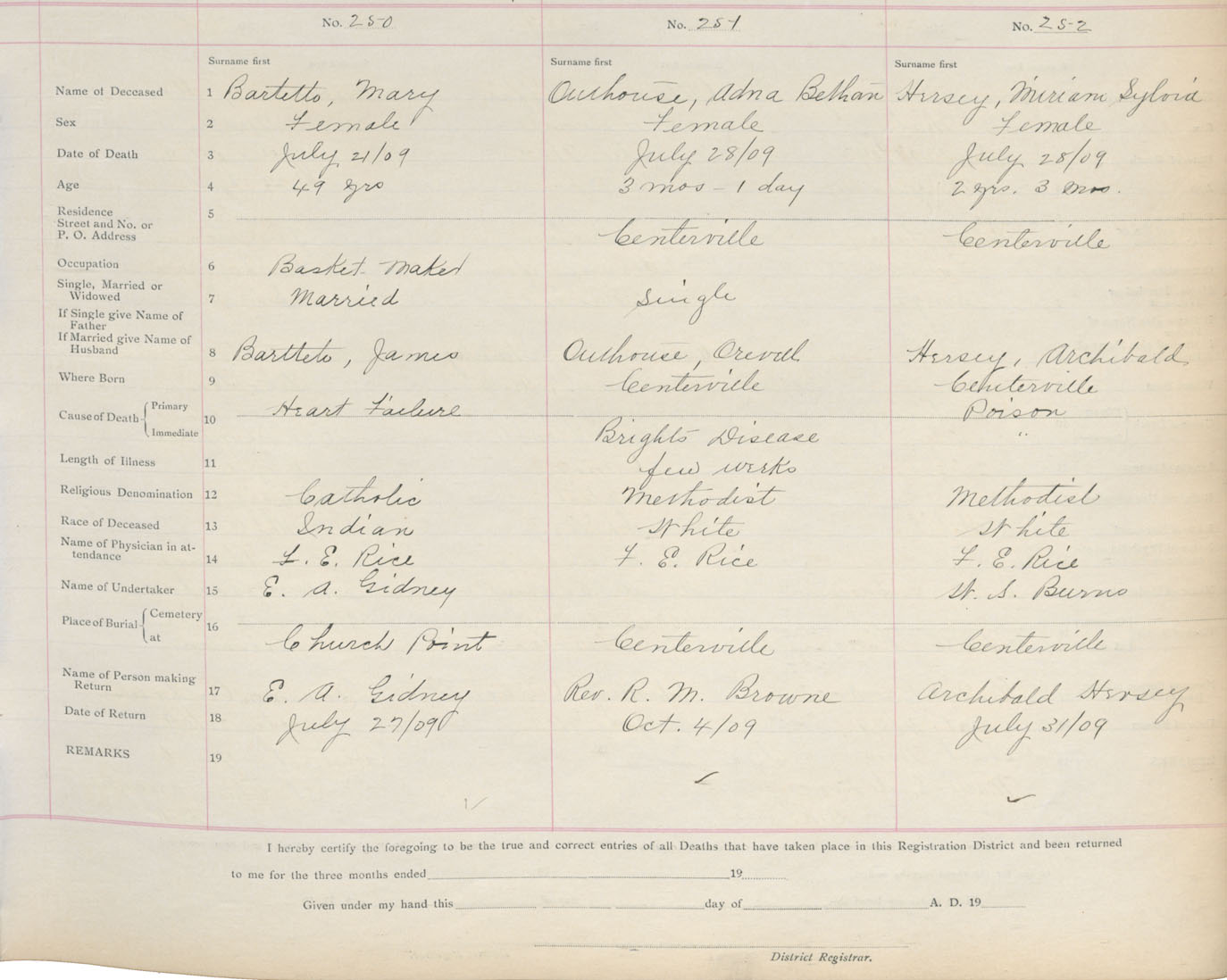 Death Registration: Year: 1909 book: 6 page: 42 number: 250