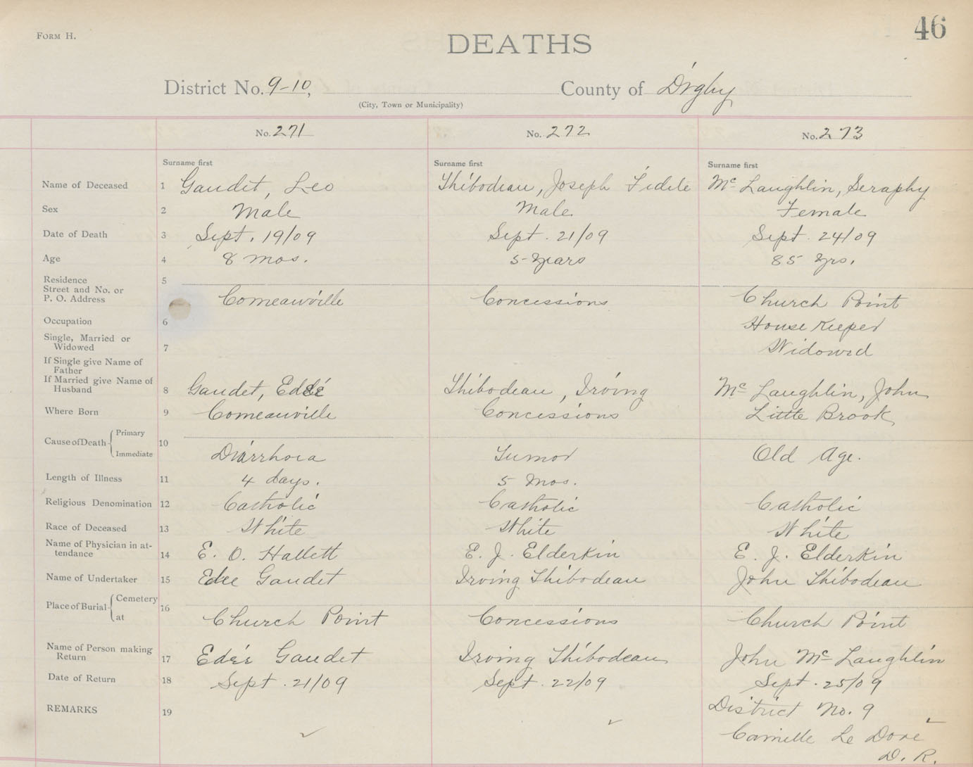 Death Registration: Year: 1909 book: 6 page: 46 number: 271