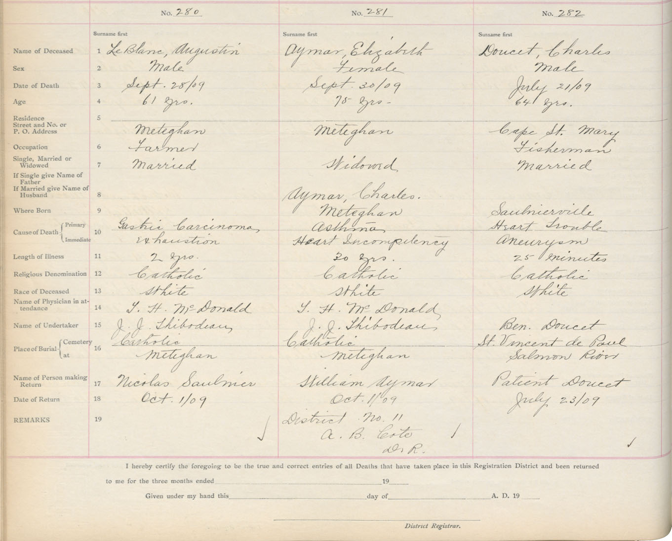 Death Registration: Year: 1909 book: 6 page: 47 number: 280