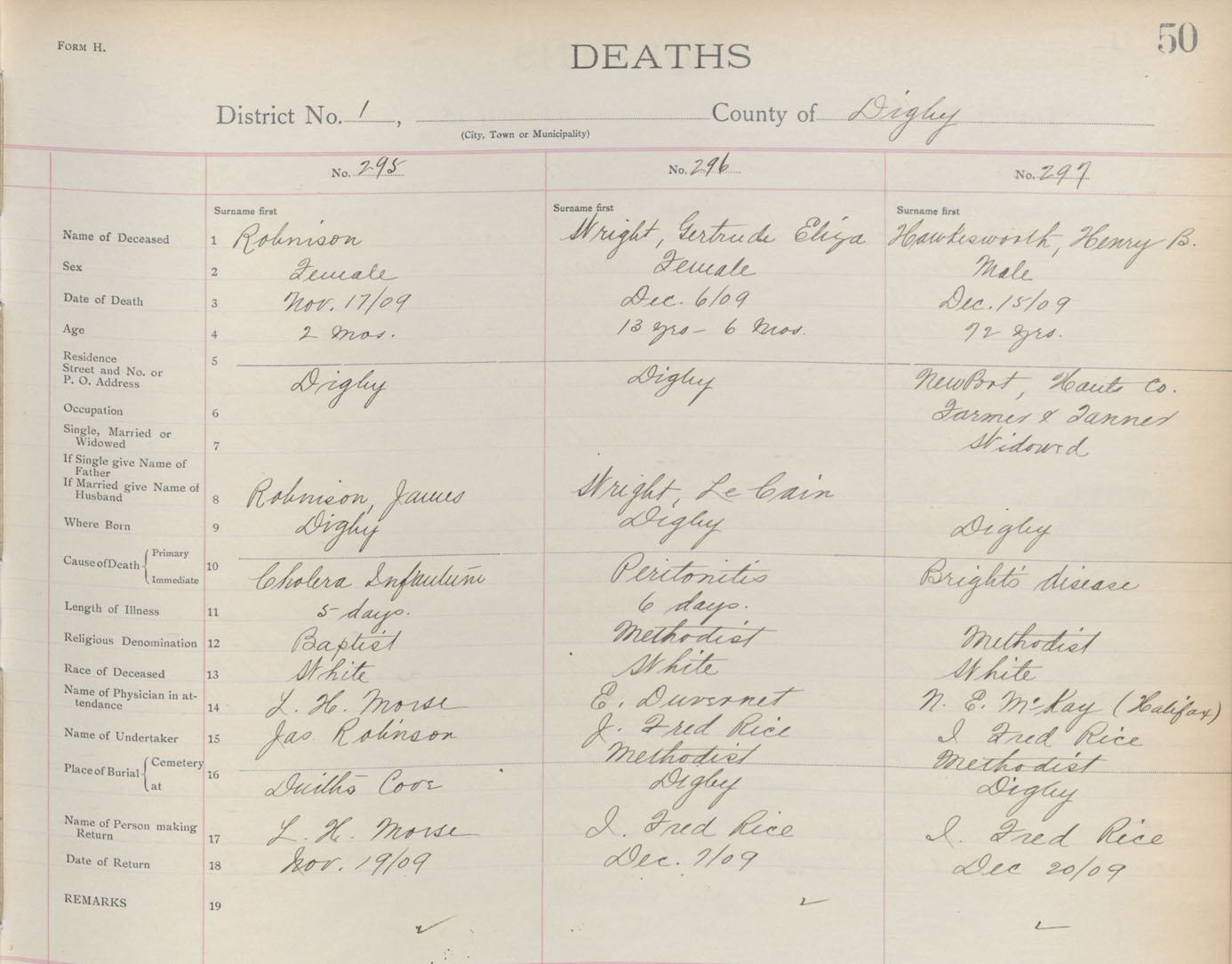 Death Registration: Year: 1909 book: 6 page: 50 number: 295