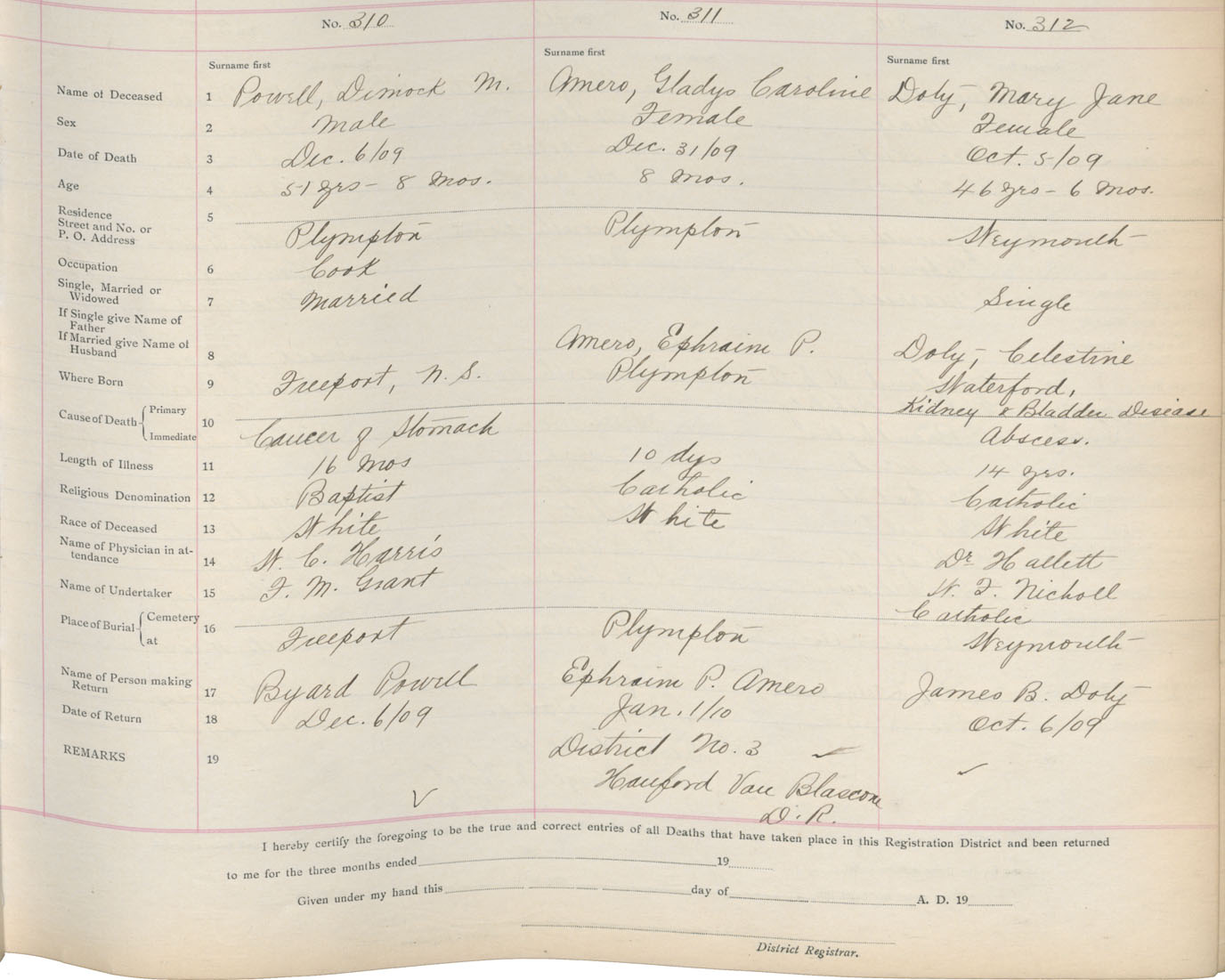 Death Registration: Year: 1909 book: 6 page: 52 number: 310