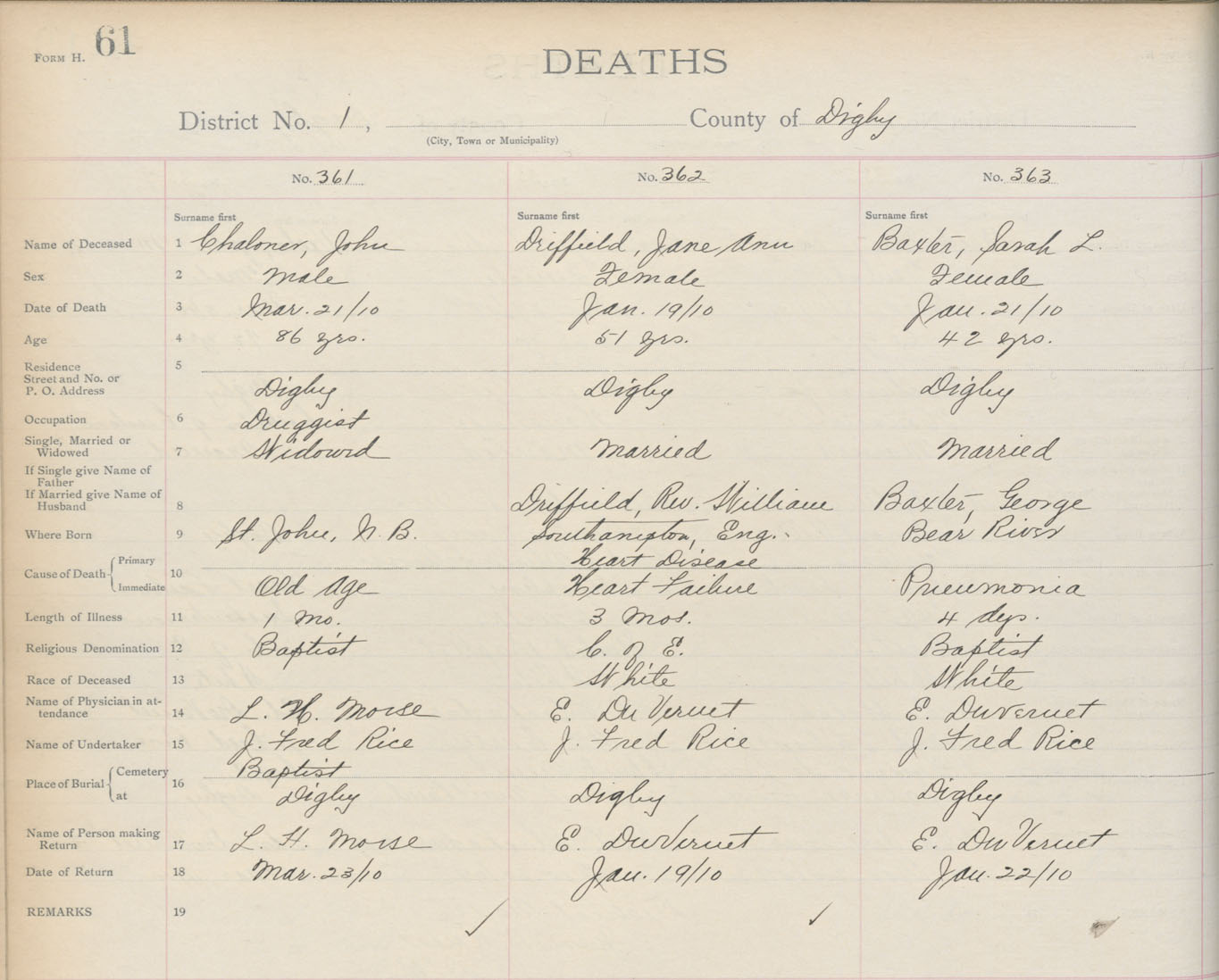 Death Registration: Year: 1910 book: 6 page: 61 number: 361