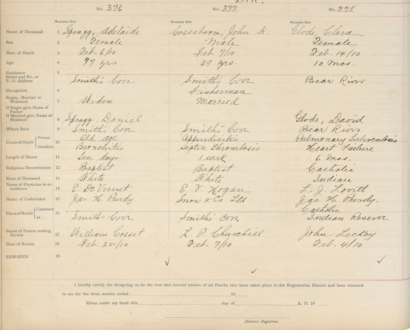 Death Registration: Year: 1910 book: 6 page: 63 number: 376