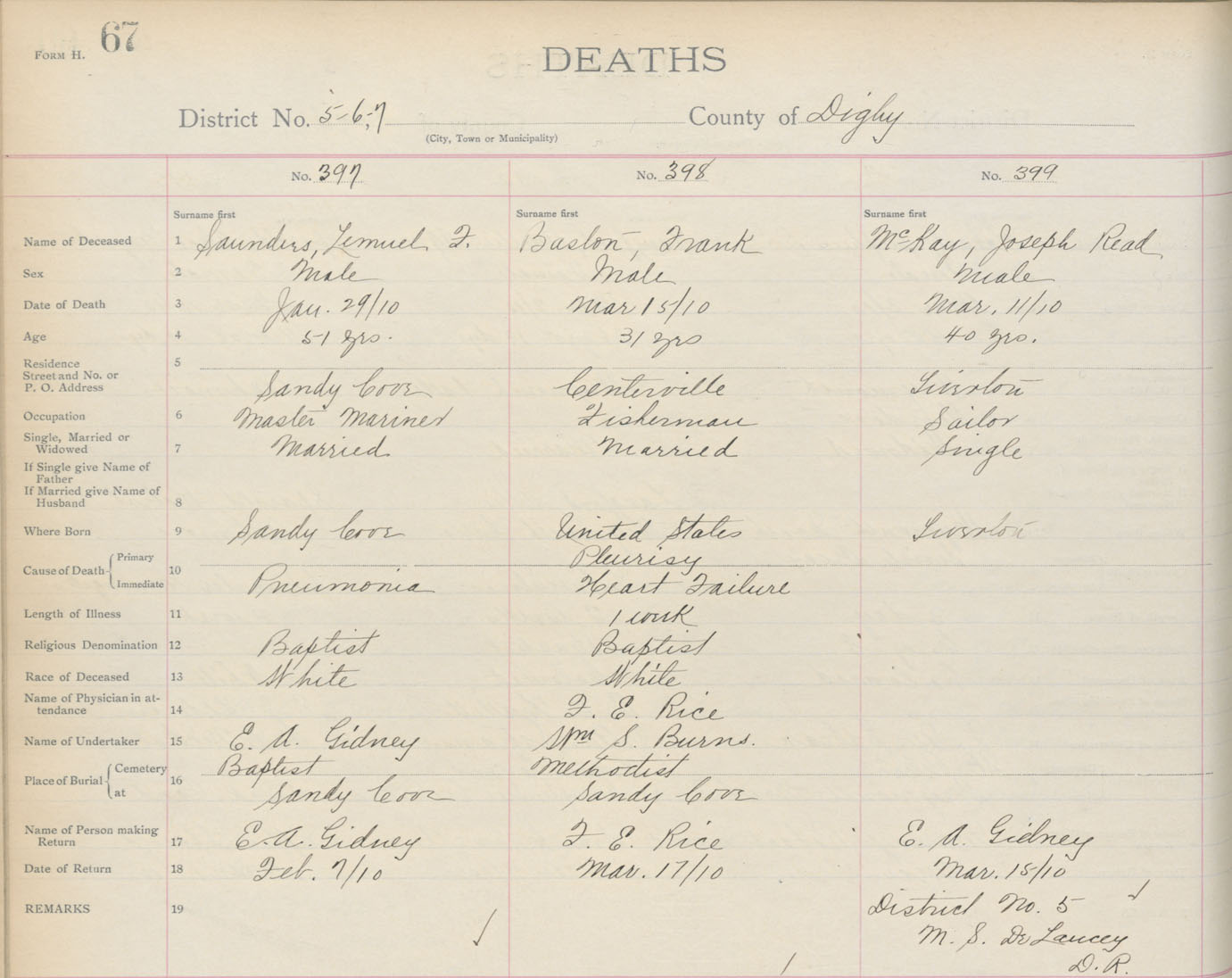 Death Registration: Year: 1910 book: 6 page: 67 number: 397