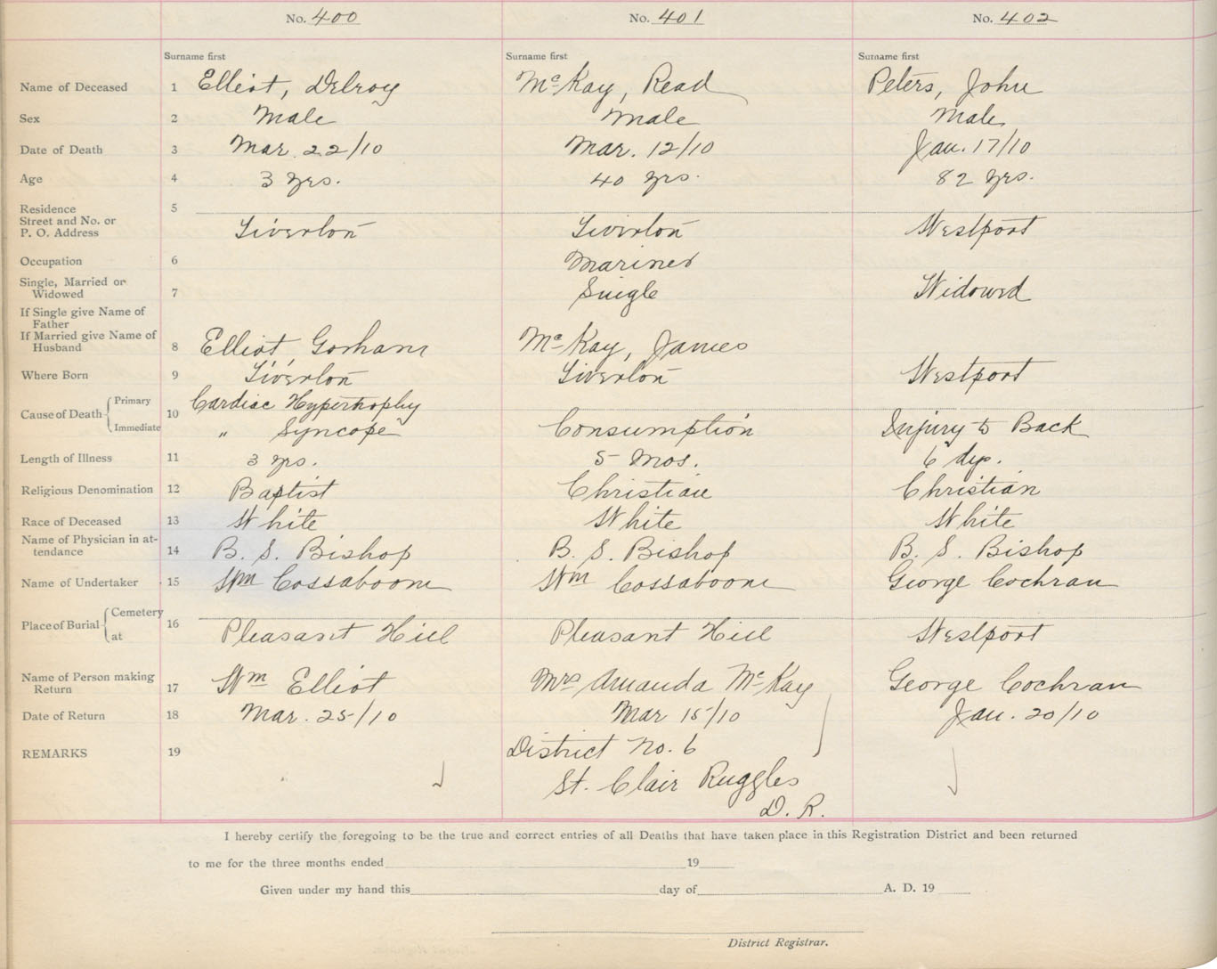 Death Registration: Year: 1910 book: 6 page: 67 number: 400