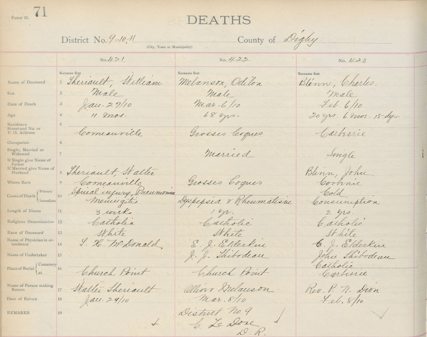 Death Registration: Year: 1910 book: 6 page: 71 number: 421