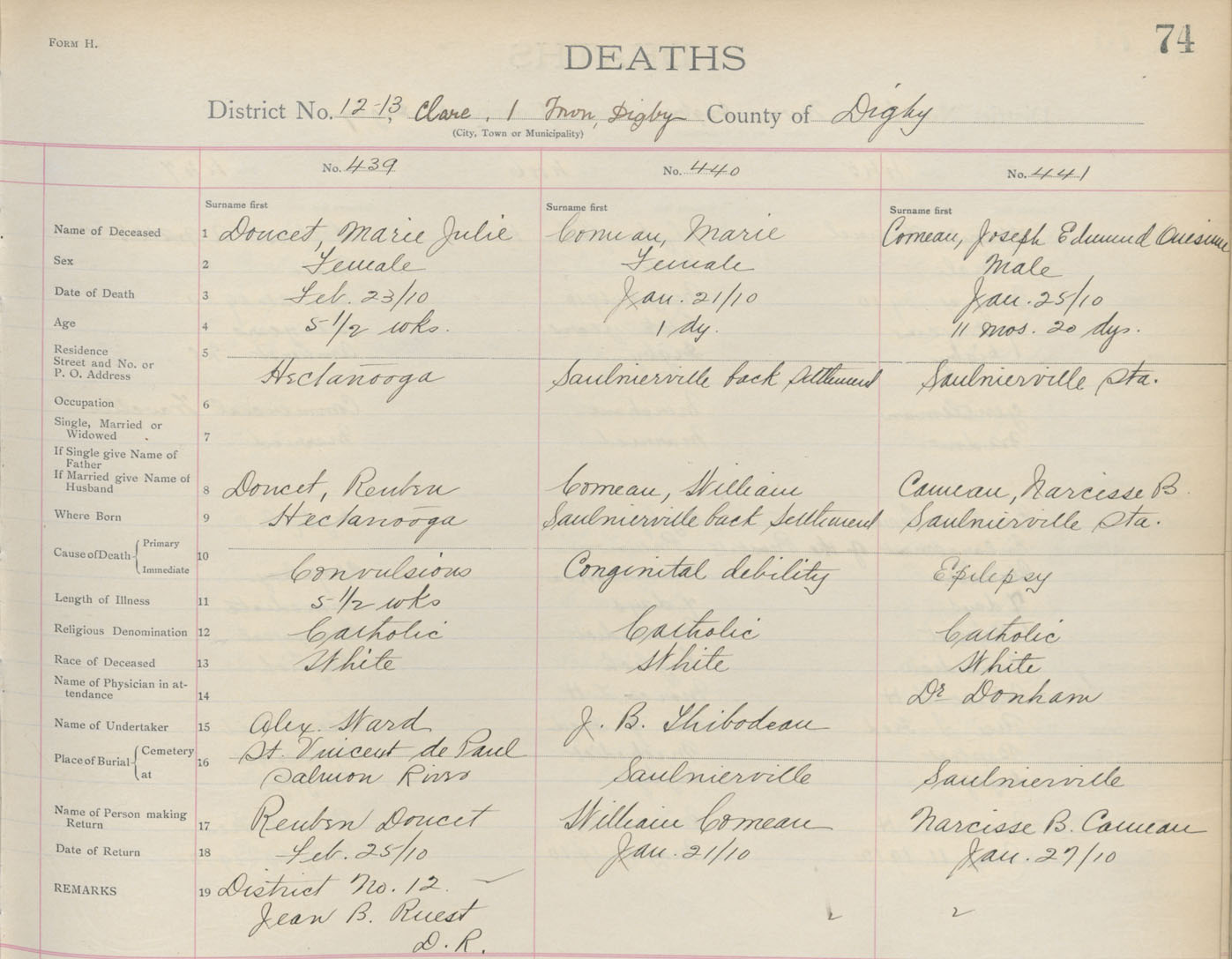 Death Registration: Year: 1910 book: 6 page: 74 number: 439