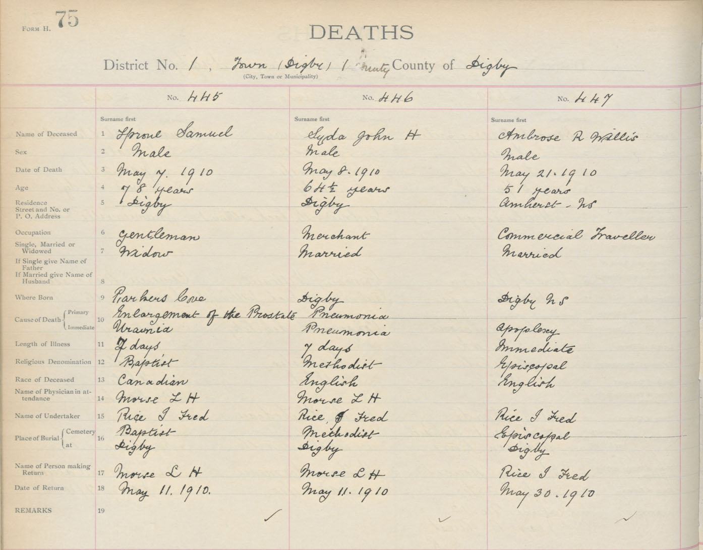 Death Registration: Year: 1910 book: 6 page: 75 number: 445