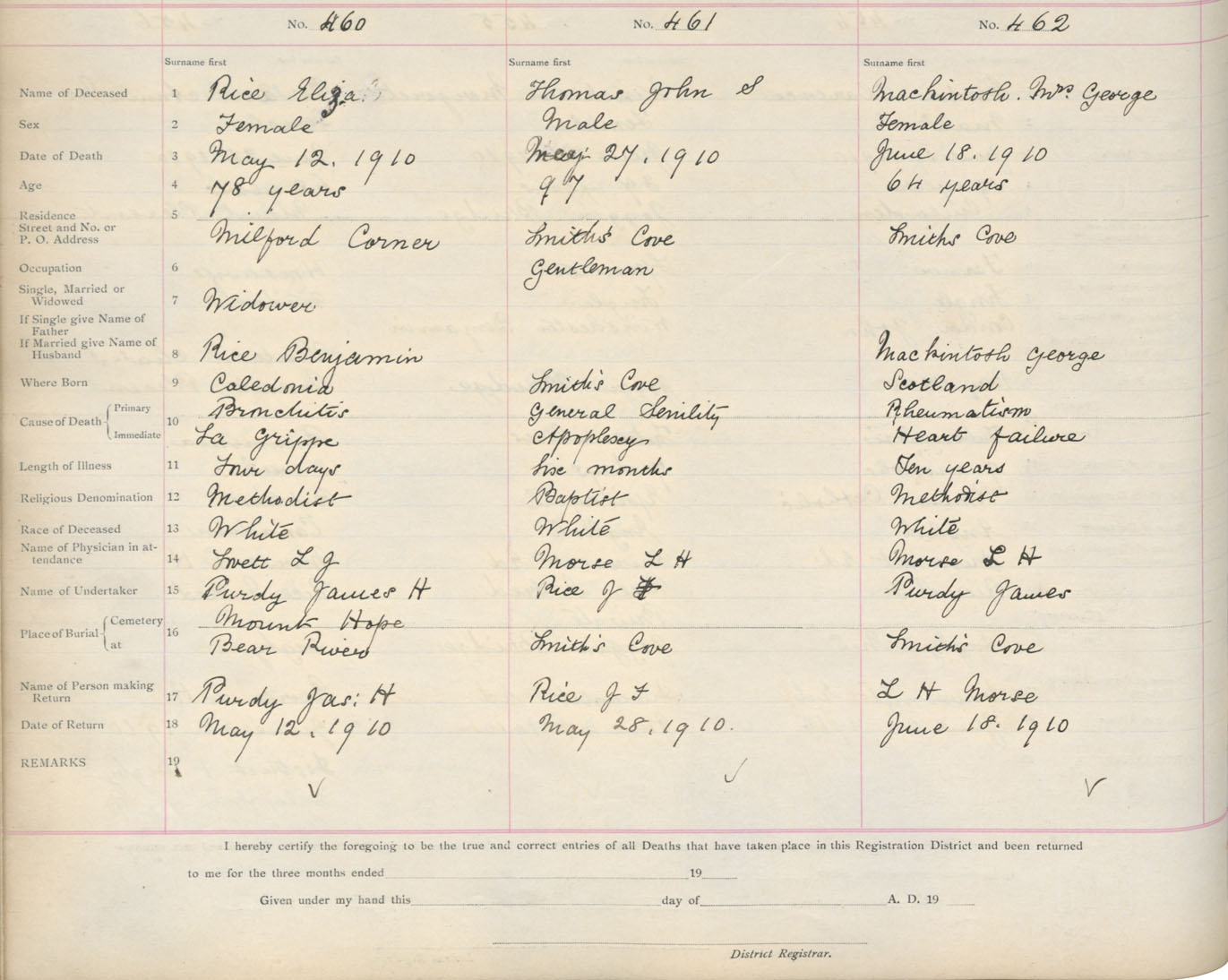 Death Registration: Year: 1910 book: 6 page: 77 number: 460