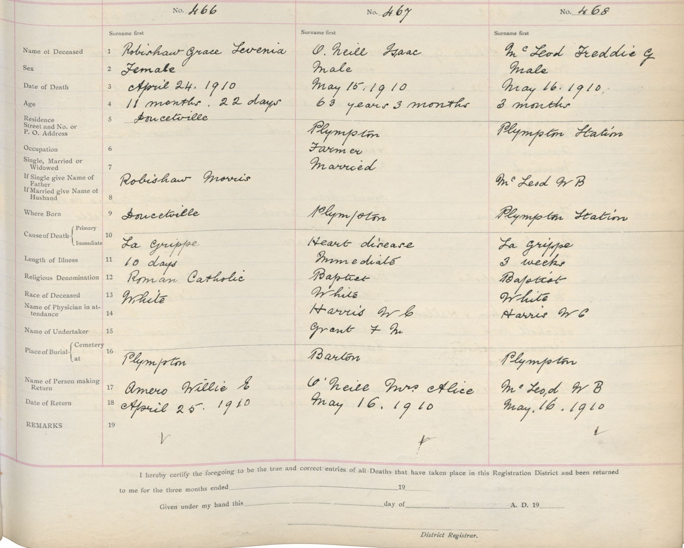 Death Registration: Year: 1910 book: 6 page: 78 number: 466