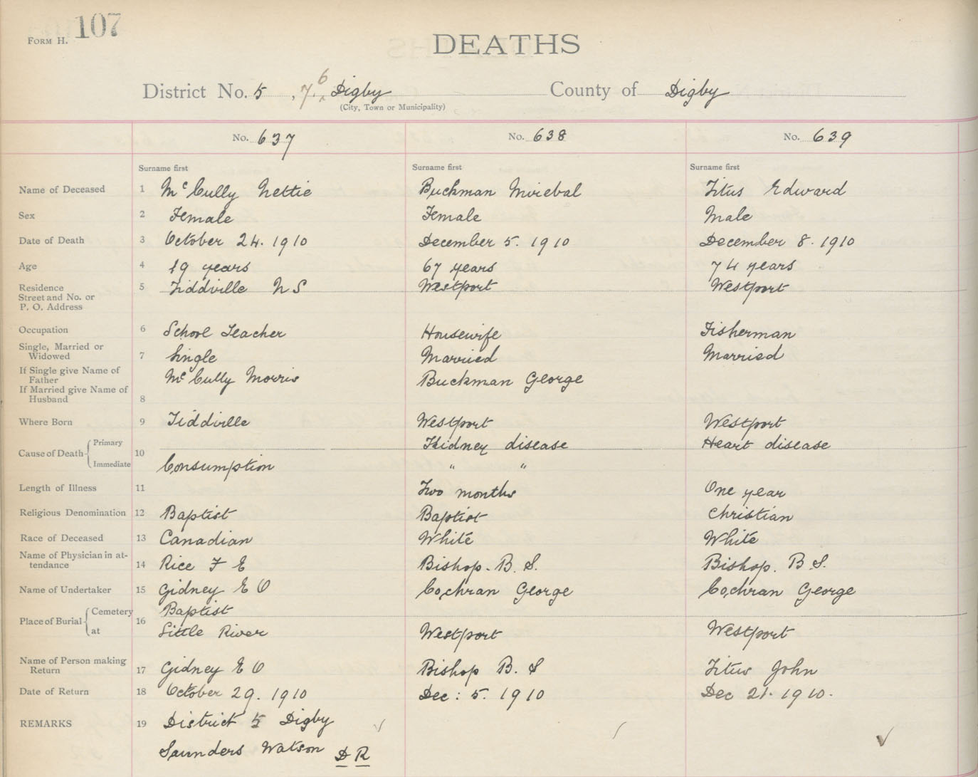 Death Registration: Year: 1910 book: 6 page: 107 number: 637