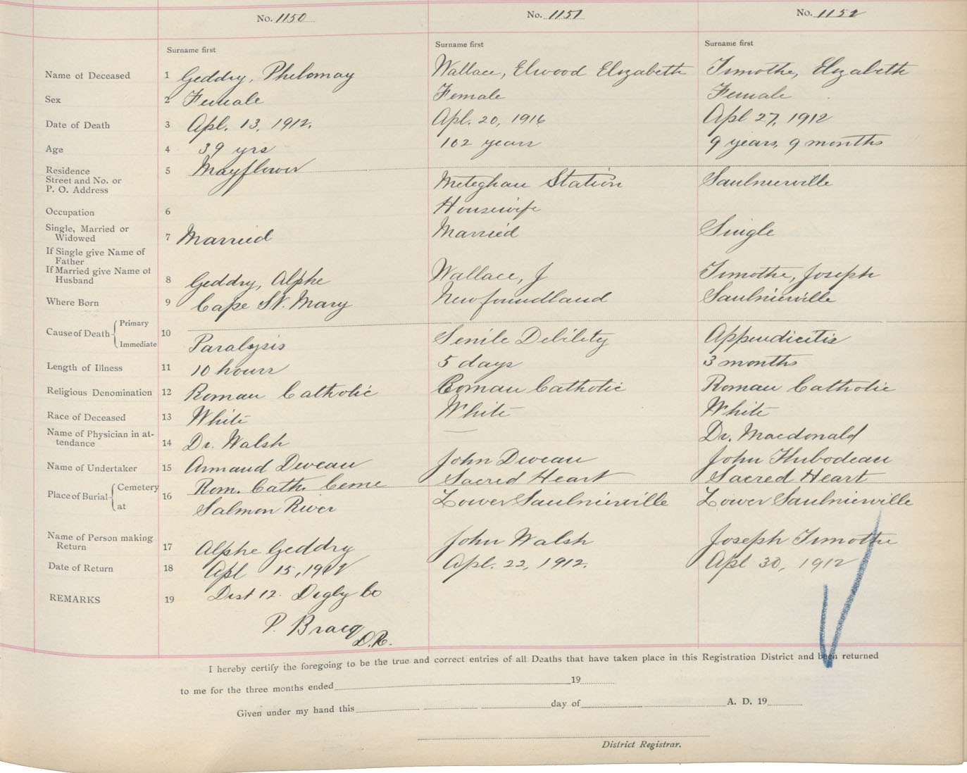 Death Registration: Year: 1912 book: 6 page: 192 number: 1152