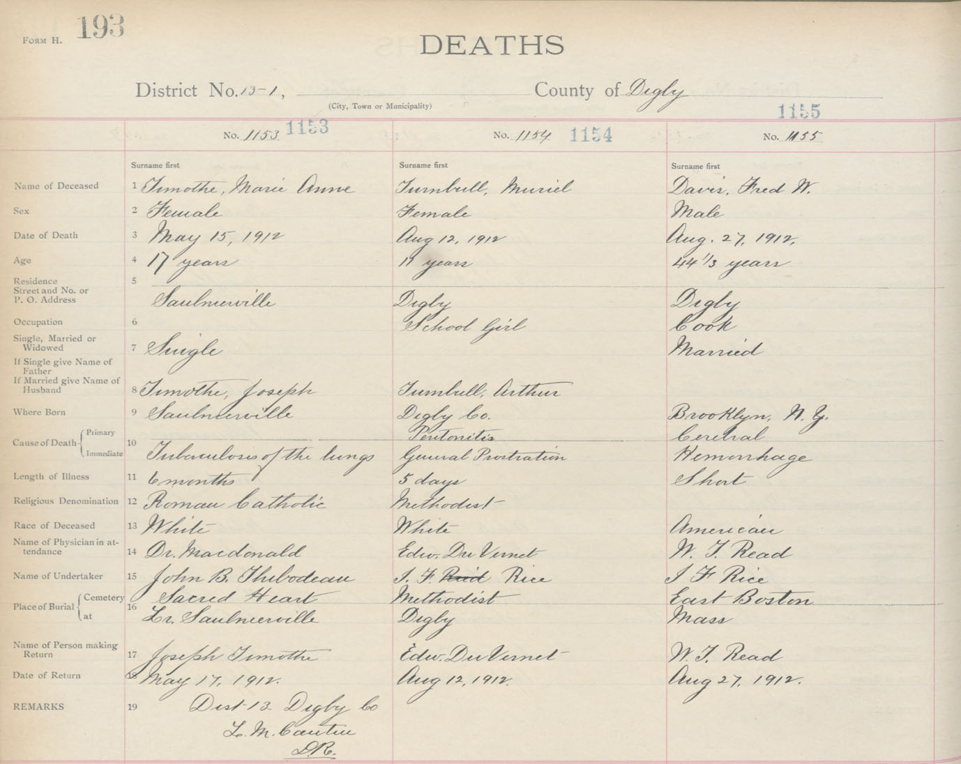 Death Registration: Year: 1912 book: 6 page: 193 number: 1155