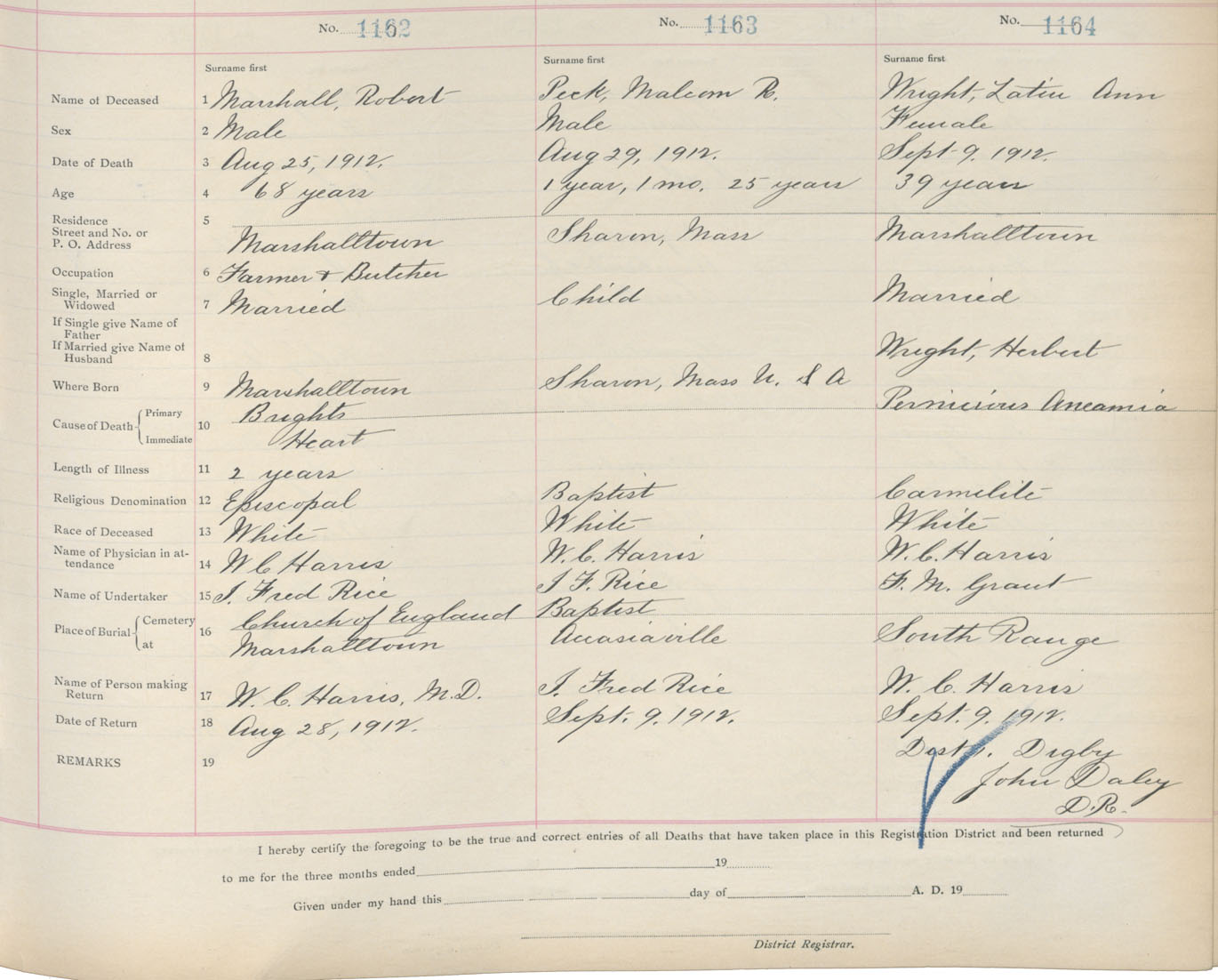 Death Registration: Year: 1912 book: 6 page: 194 number: 1164