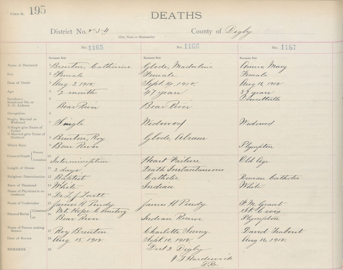 Death Registration: Year: 1912 book: 6 page: 195 number: 1167