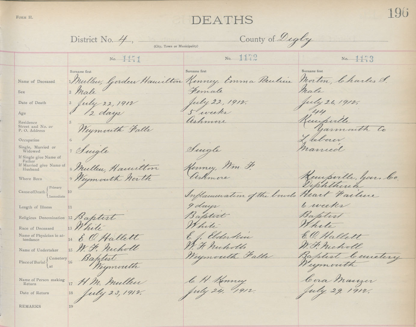 Death Registration: Year: 1912 book: 6 page: 196 number: 1173
