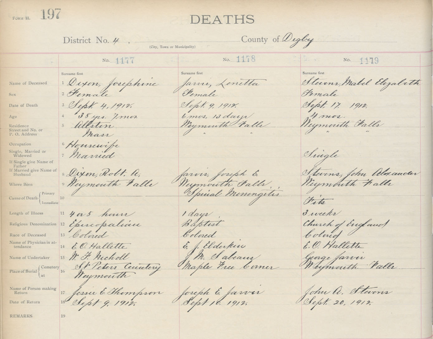 Death Registration: Year: 1912 book: 6 page: 197 number: 1179