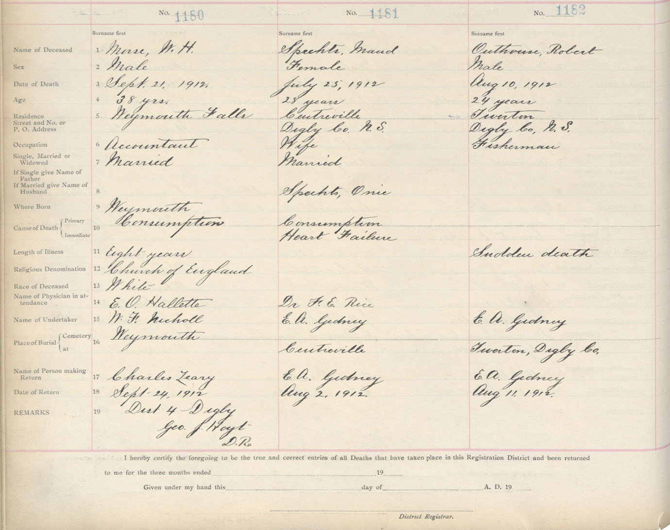 Death Registration: Year: 1912 book: 6 page: 197 number: 1182