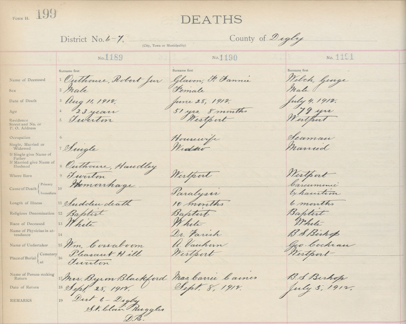 Death Registration: Year: 1912 book: 6 page: 199 number: 1191