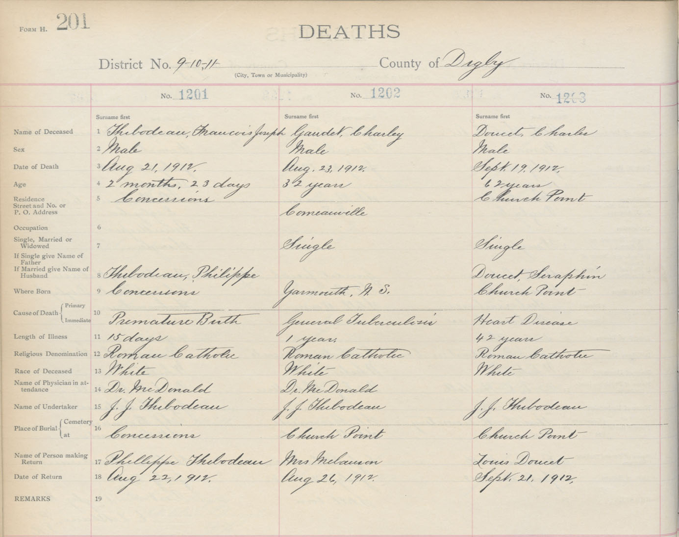 Death Registration: Year: 1912 book: 6 page: 201 number: 1203