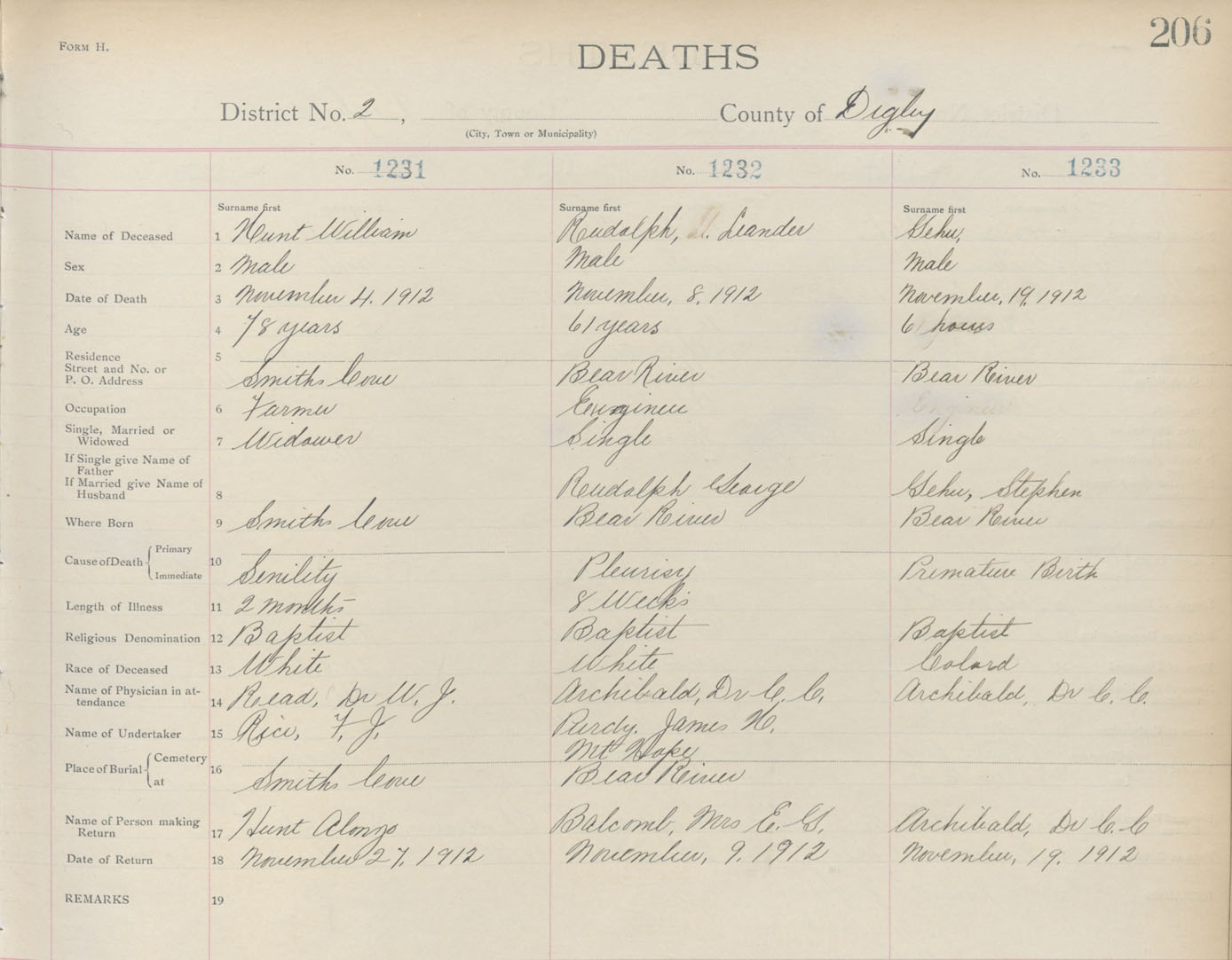 Male Death Registration: Year: 1912 book: 6 page: 206 number: 1233