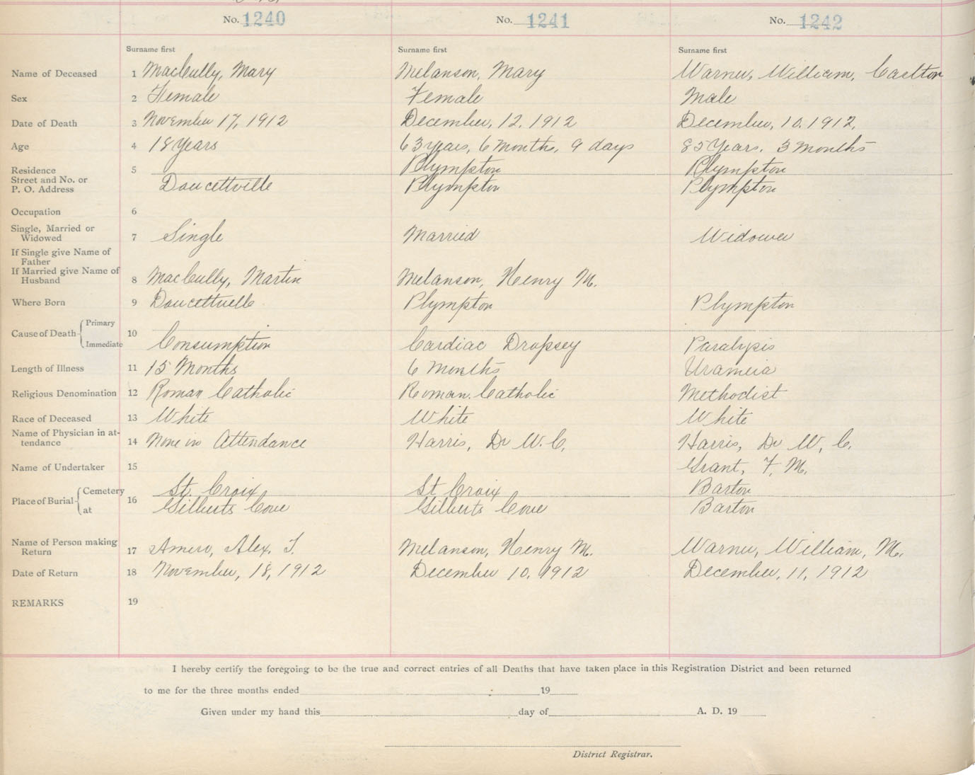 Death Registration: Year: 1912 book: 6 page: 207 number: 1242