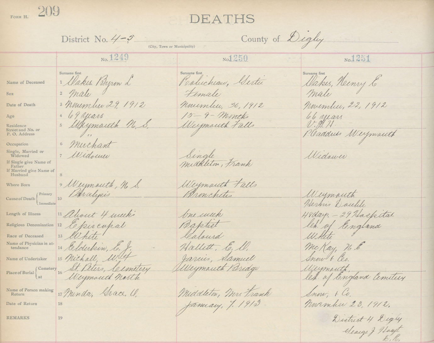 Death Registration: Year: 1912 book: 6 page: 209 number: 1251