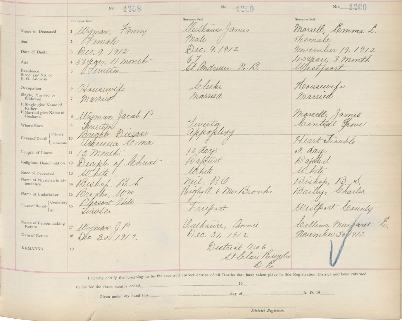 Death Registration: Year: 1912 book: 6 page: 210 number: 1260