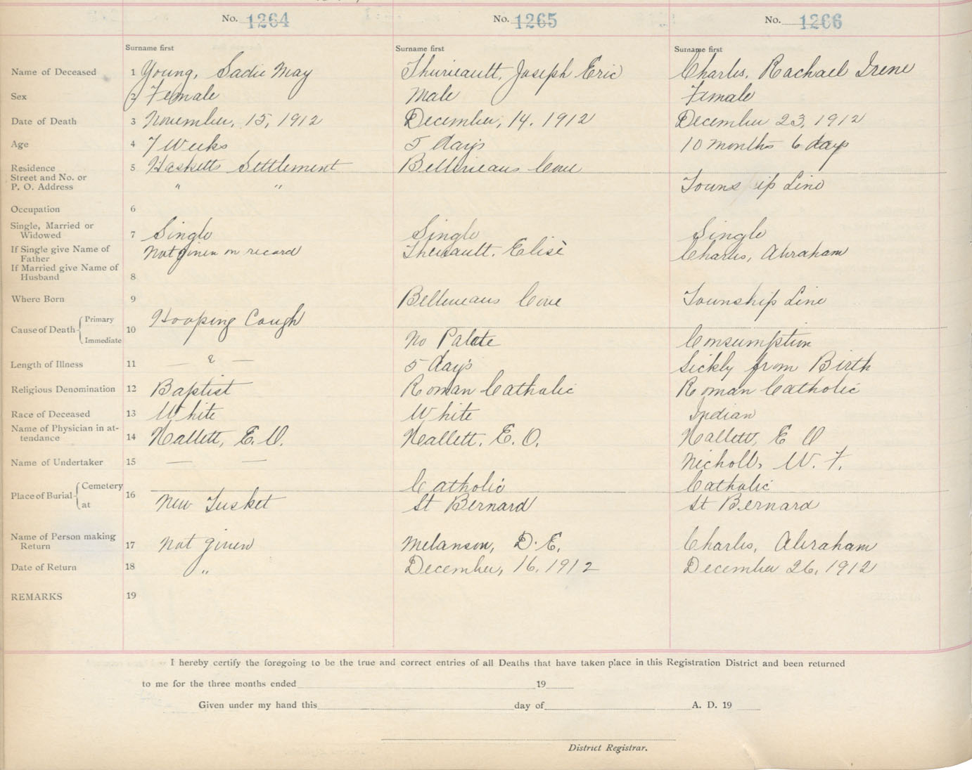 Death Registration: Year: 1912 book: 6 page: 211 number: 1266