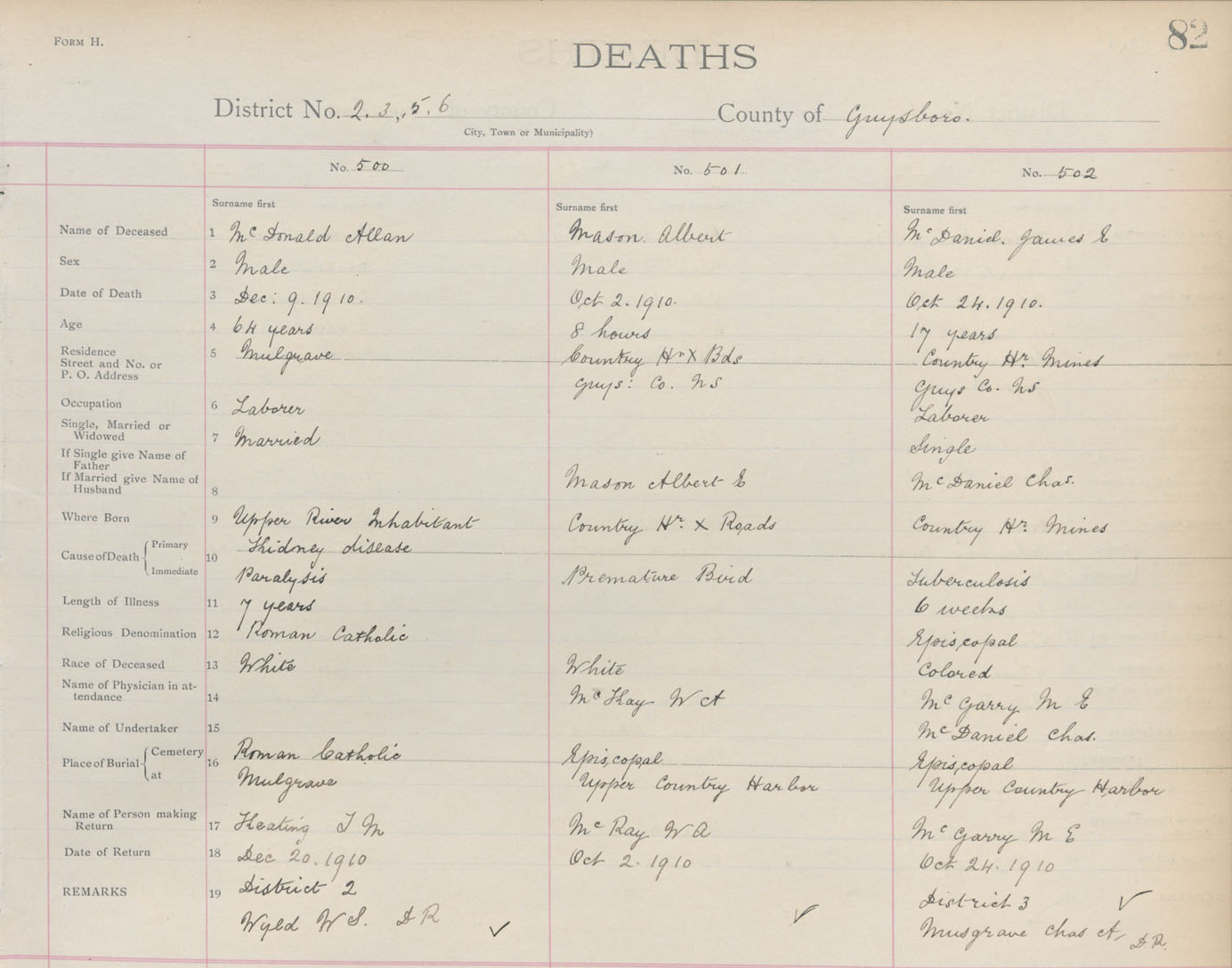 Death Registration: Year: 1910 book: 7 page: 82 number: 502