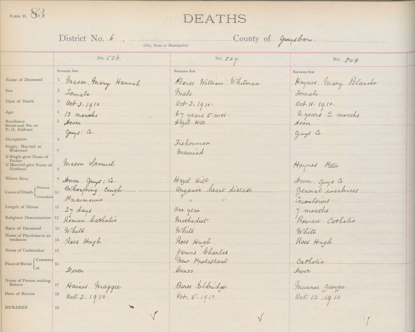 Death Registration: Year: 1910 book: 7 page: 83 number: 508