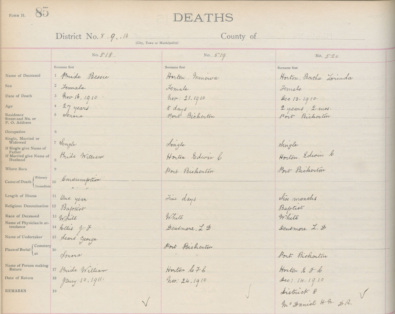 Death Registration: Year: 1910 book: 7 page: 85 number: 520