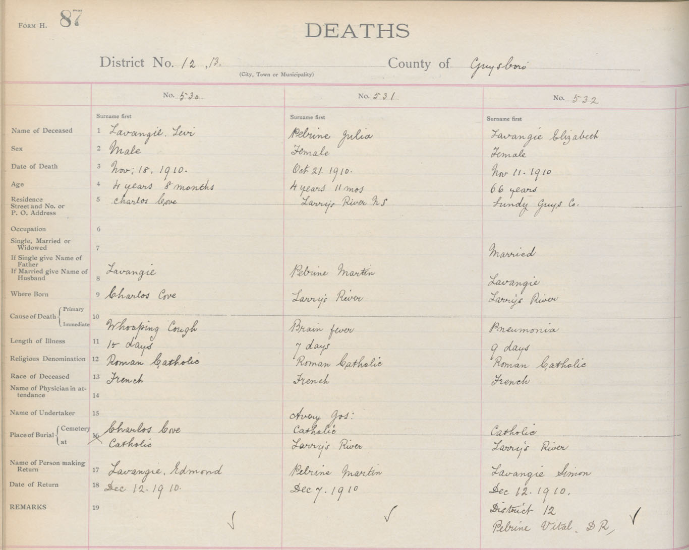 Death Registration: Year: 1910 book: 7 page: 87 number: 532
