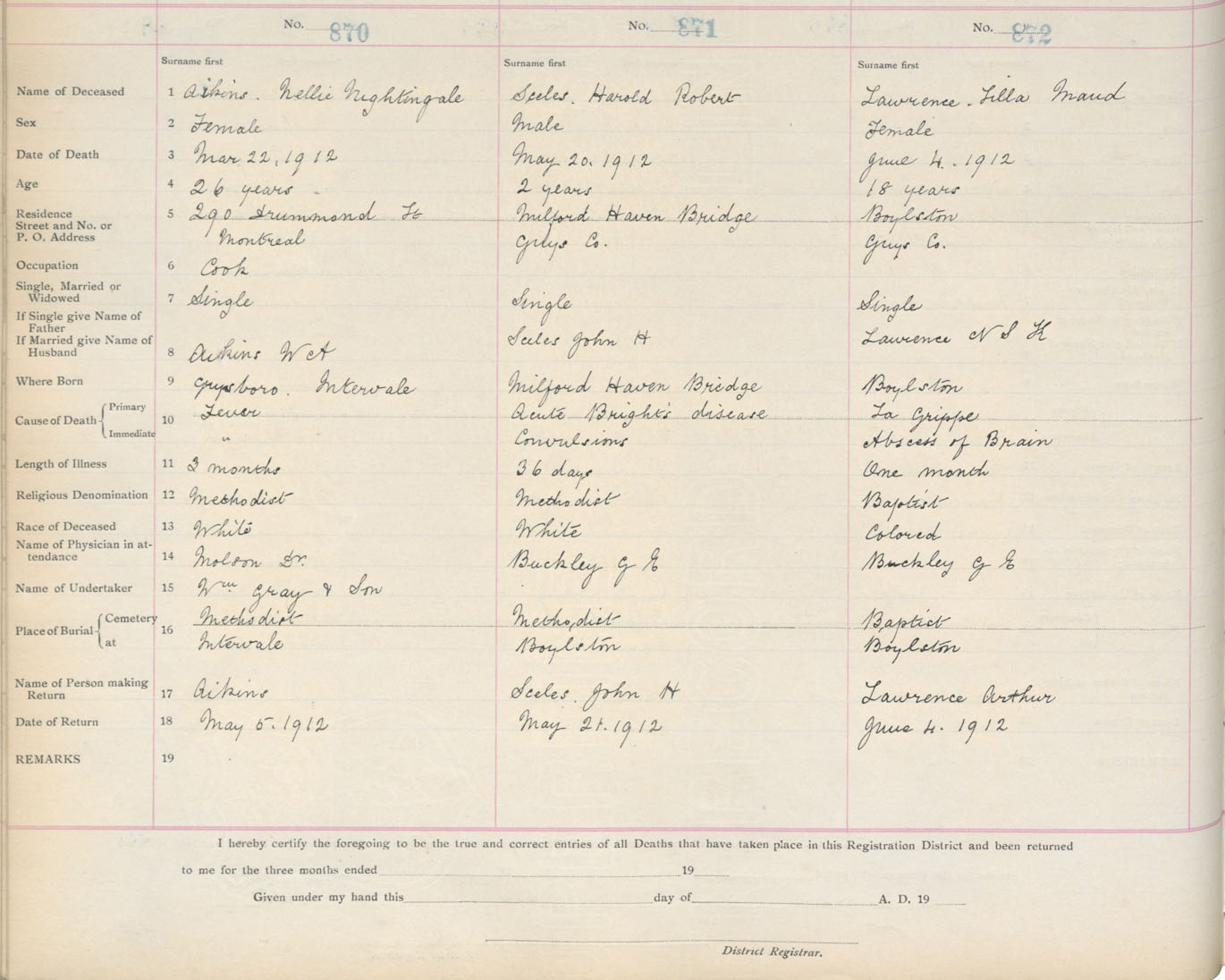 Death Registration: Year: 1912 book: 7 page: 143 number: 872
