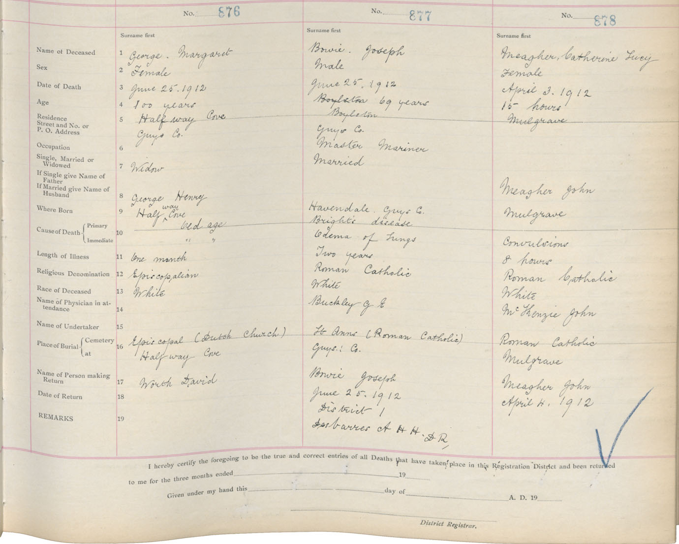 Death Registration: Year: 1912 book: 7 page: 144 number: 878