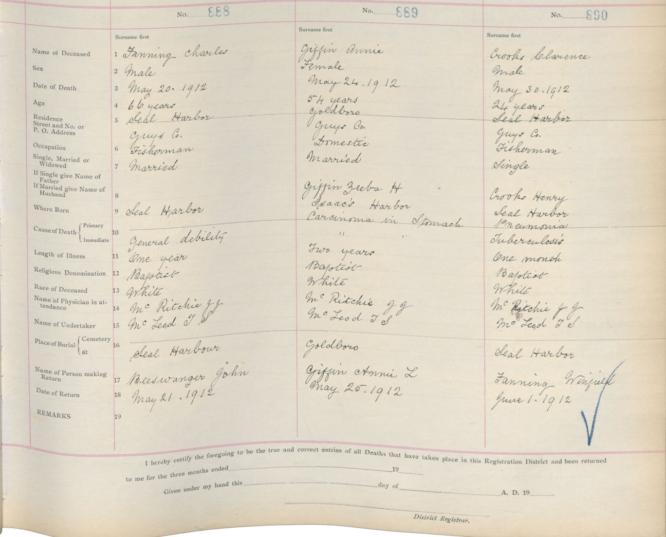 Death Registration: Year: 1912 book: 7 page: 146 number: 890