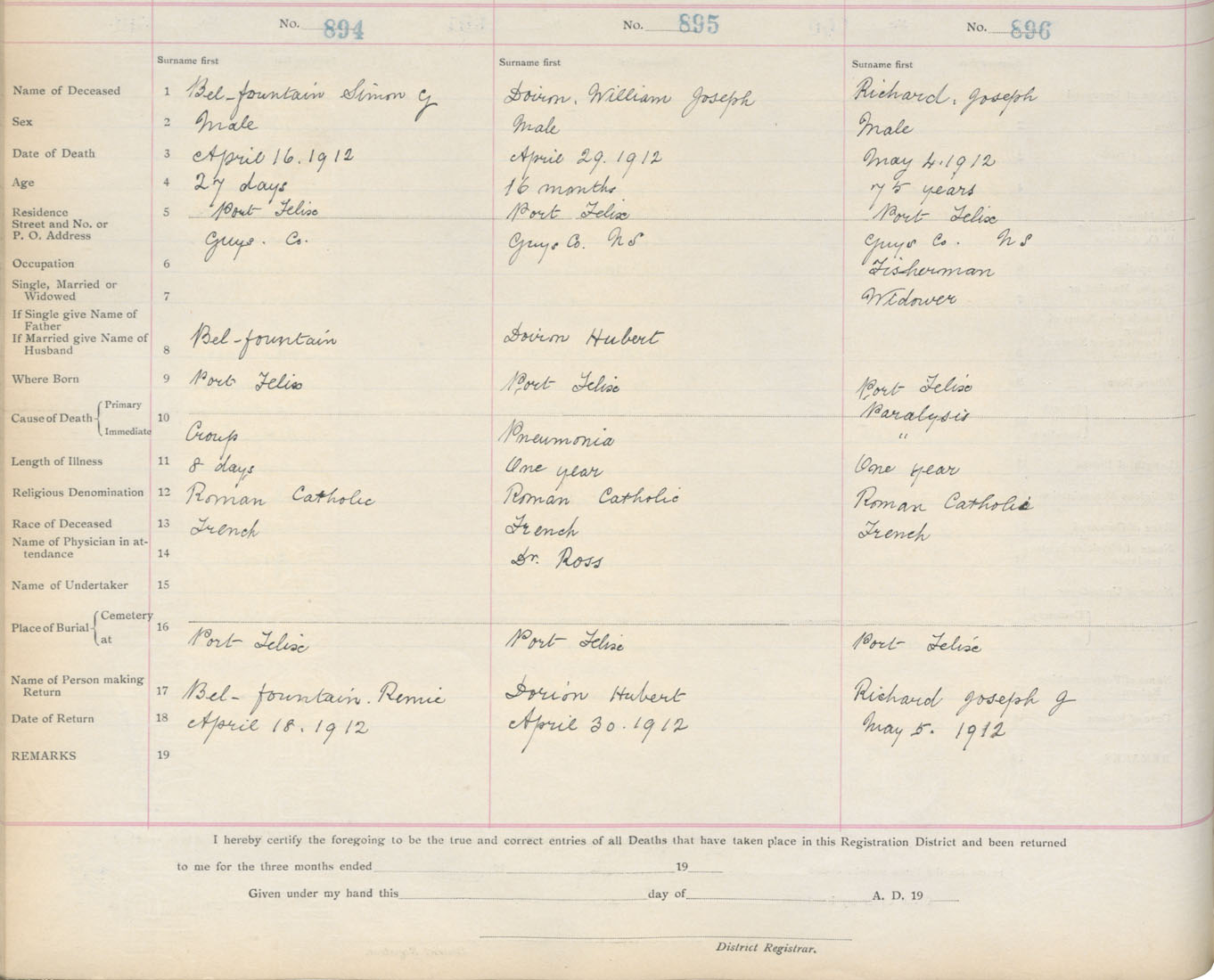 Death Registration: Year: 1912 book: 7 page: 147 number: 896