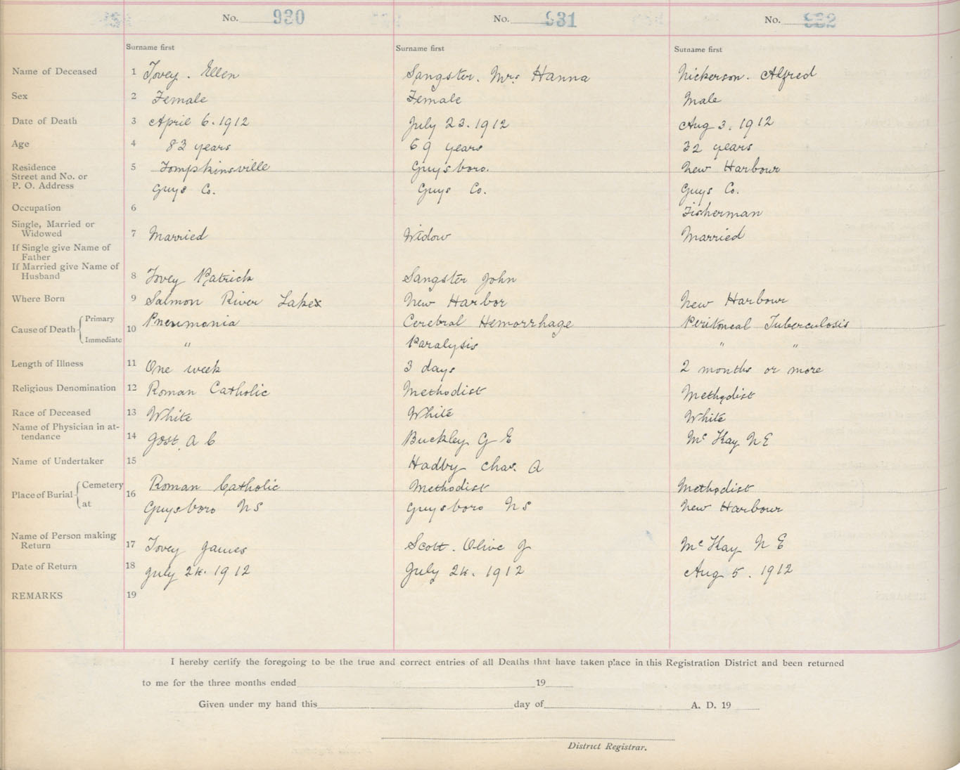 Death Registration: Year: 1912 book: 7 page: 153 number: 932