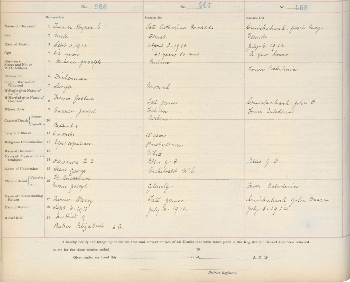 Death Registration: Year: 1912 book: 7 page: 159 number: 968