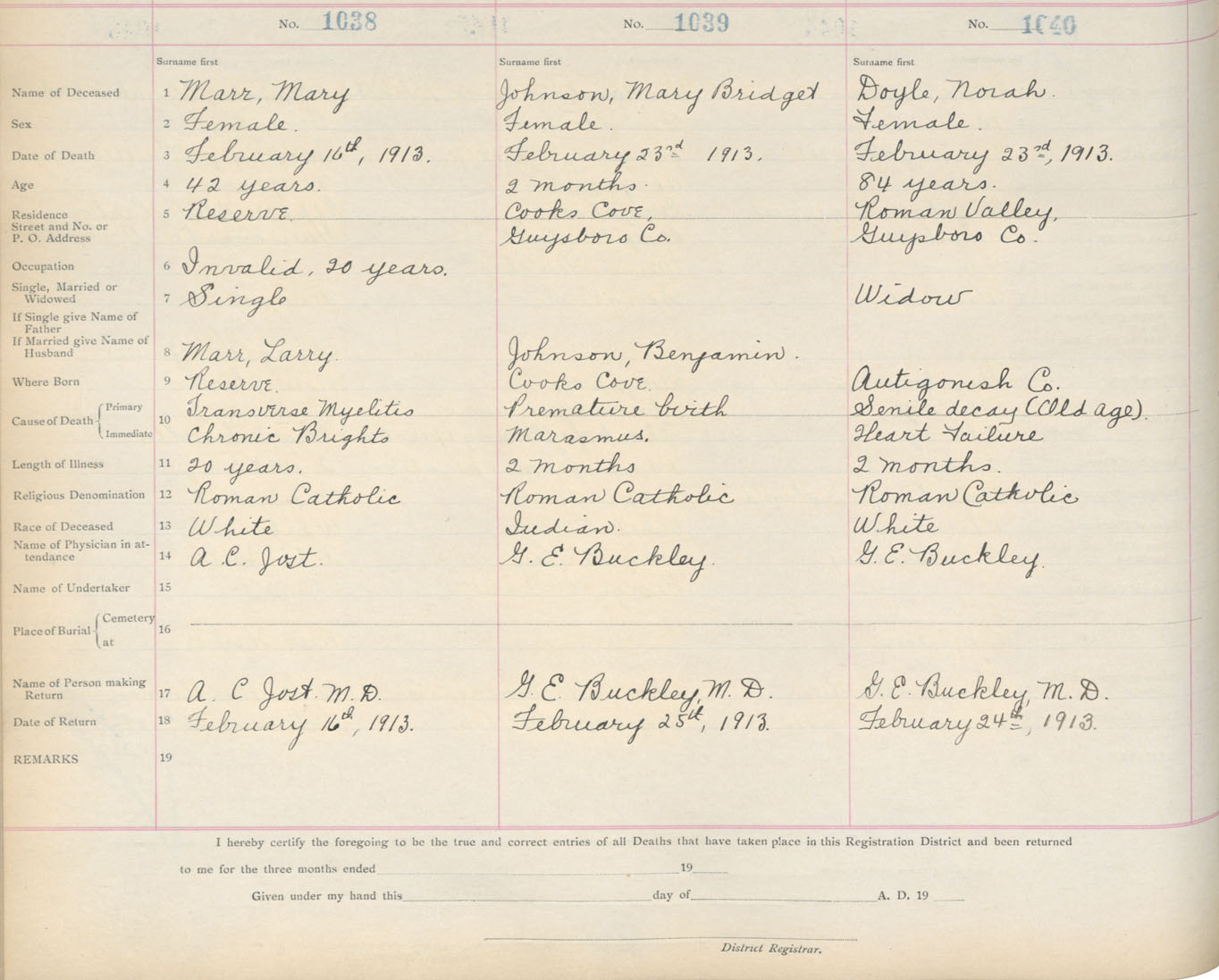 Death Registration: Year: 1913 book: 7 page: 171 number: 1038