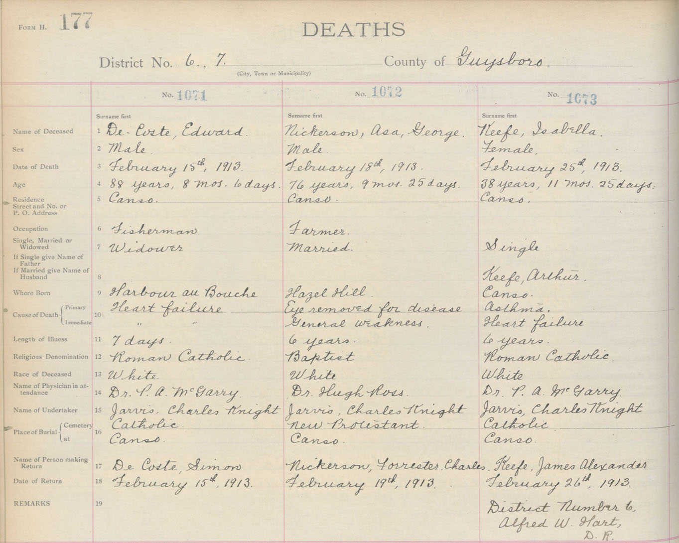 Death Registration: Year: 1913 book: 7 page: 177 number: 1071