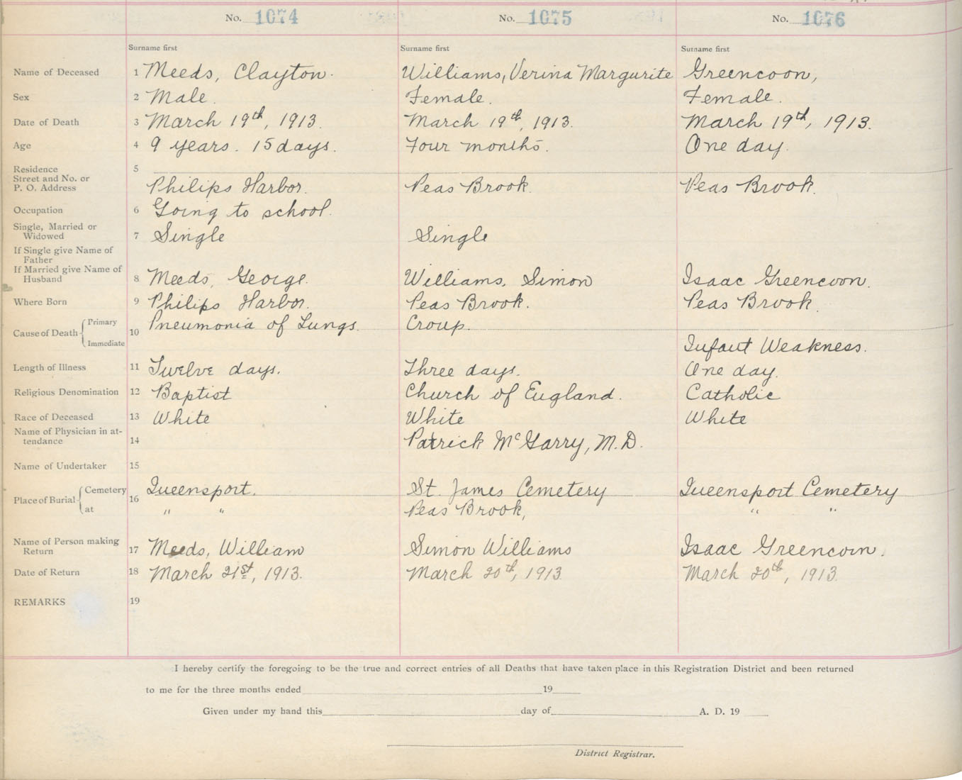 Death Registration: Year: 1913 book: 7 page: 177 number: 1074