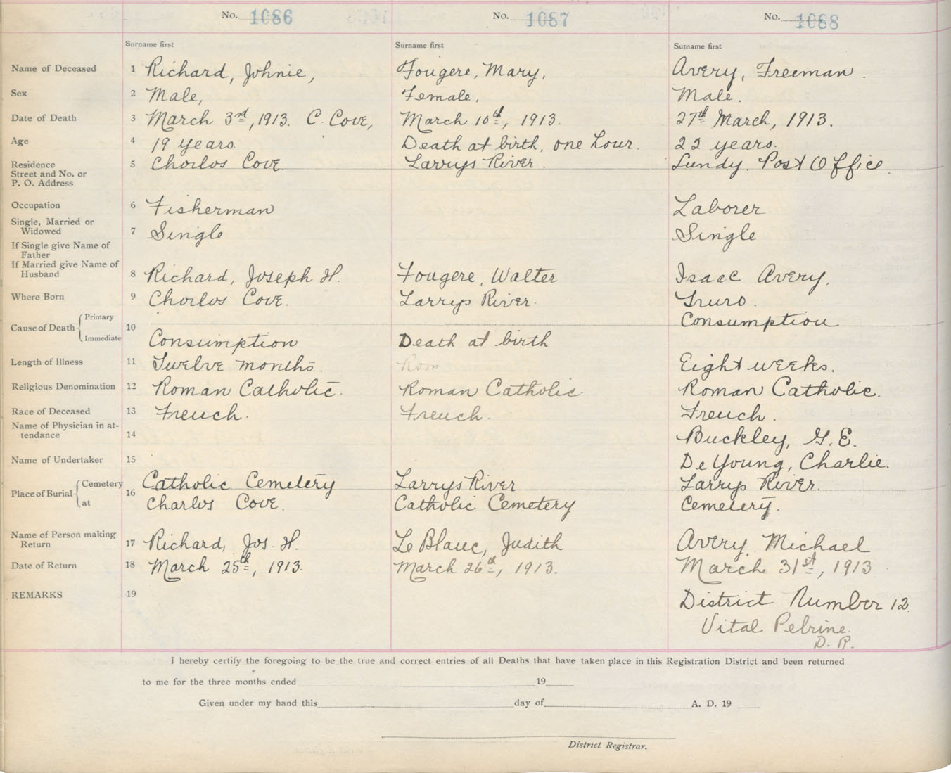 Death Registration: Year: 1913 book: 7 page: 179 number: 1086