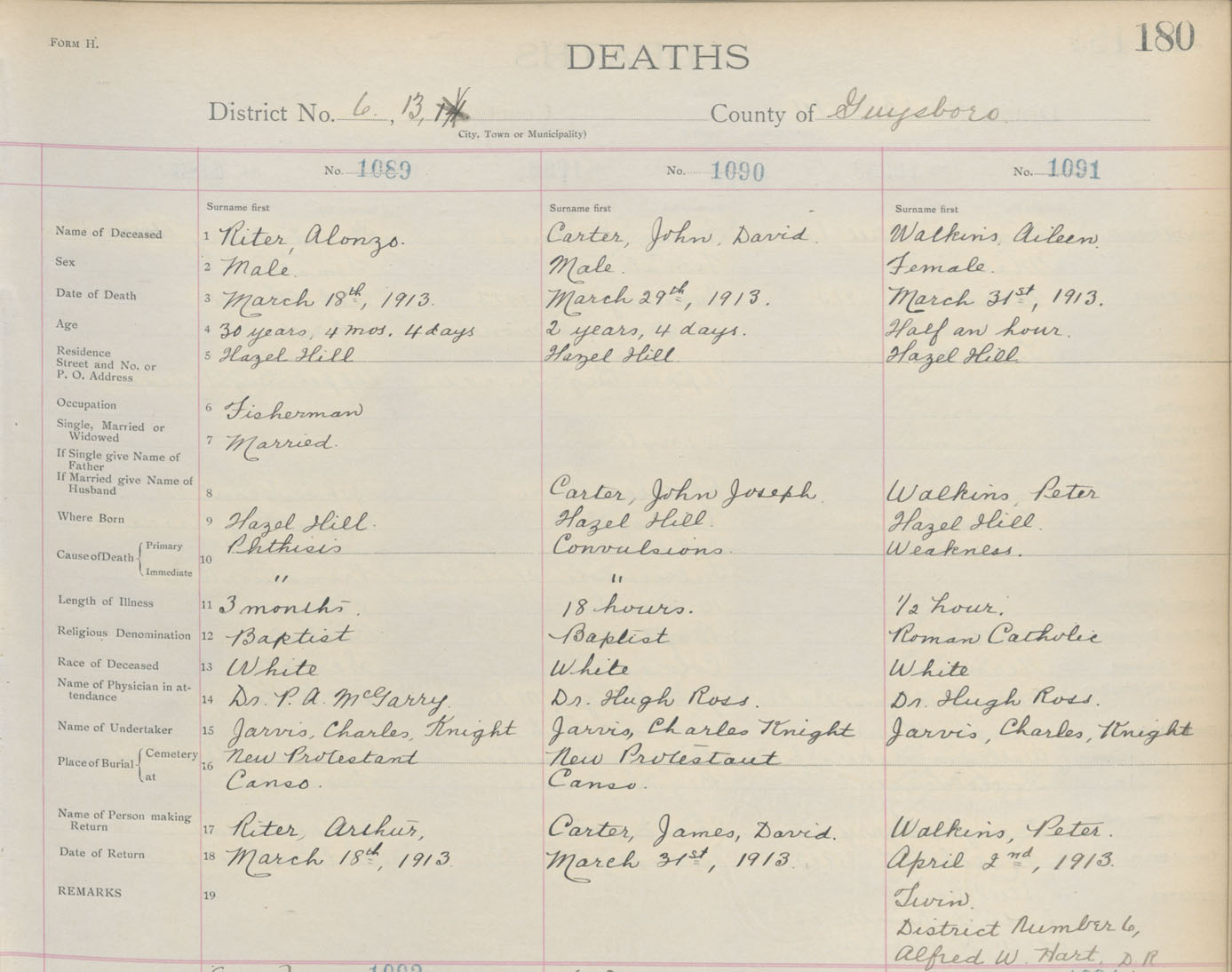 Death Registration: Year: 1913 book: 7 page: 180 number: 1089