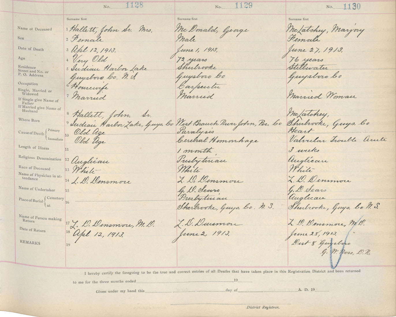 Death Registration: Year: 1913 book: 7 page: 186 number: 1128