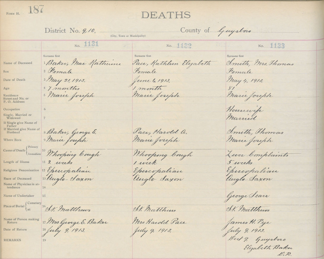 Death Registration: Year: 1913 book: 7 page: 187 number: 1131