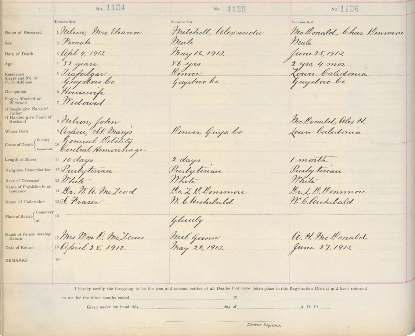 Death Registration: Year: 1913 book: 7 page: 187 number: 1134