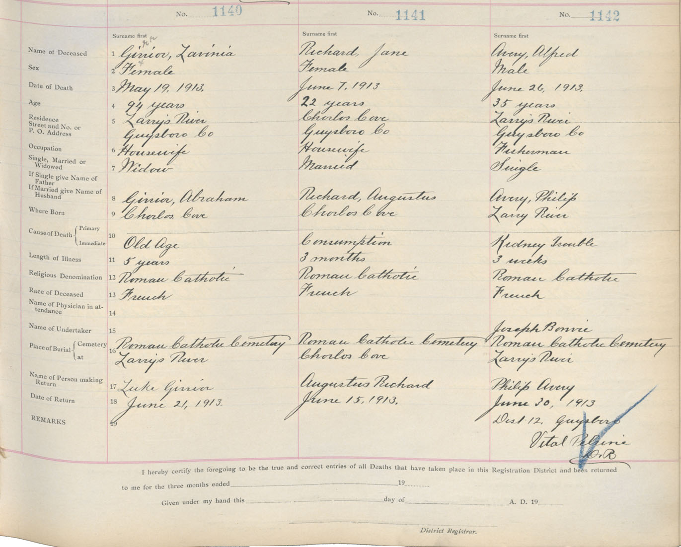 Death Registration: Year: 1913 book: 7 page: 188 number: 1140