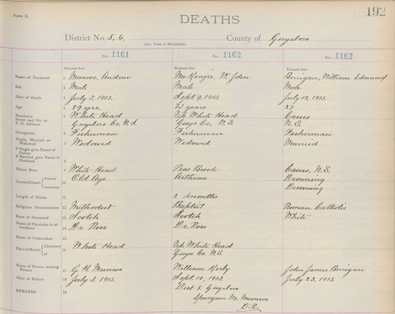 Death Registration: Year: 1913 book: 7 page: 192 number: 1161